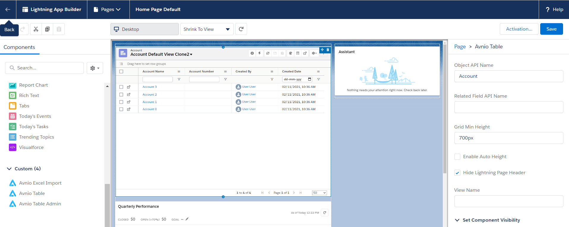 Drag & Drop Avnio Tables component from side bar to lightning page where you want to view table
