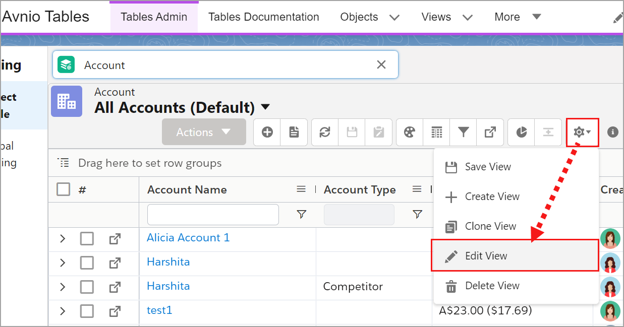 Hover on the Setting icon (Gear icon) and select the Edit View button.