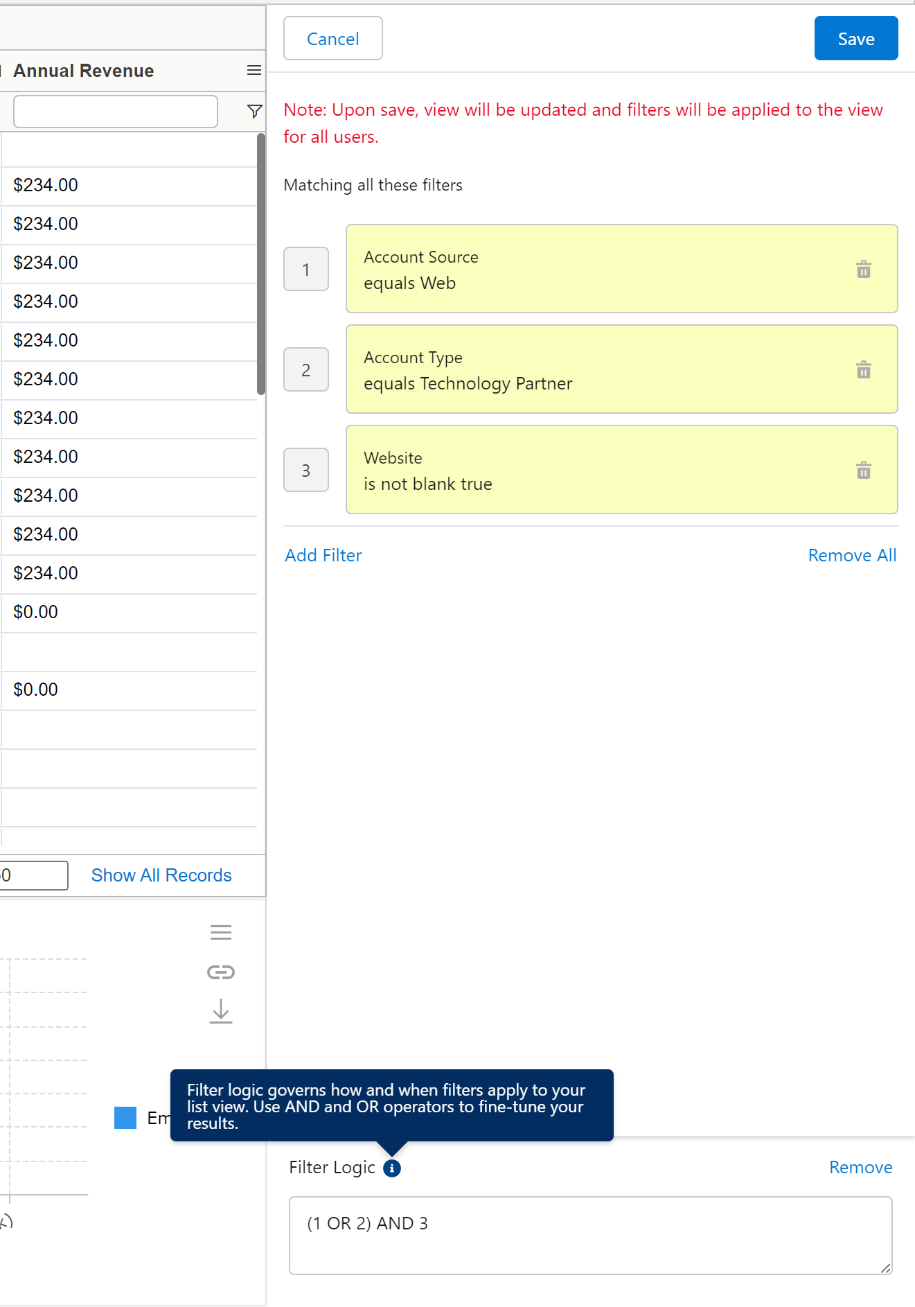Ability to add a custom filter logic in advanced filters with AND / OR operators.