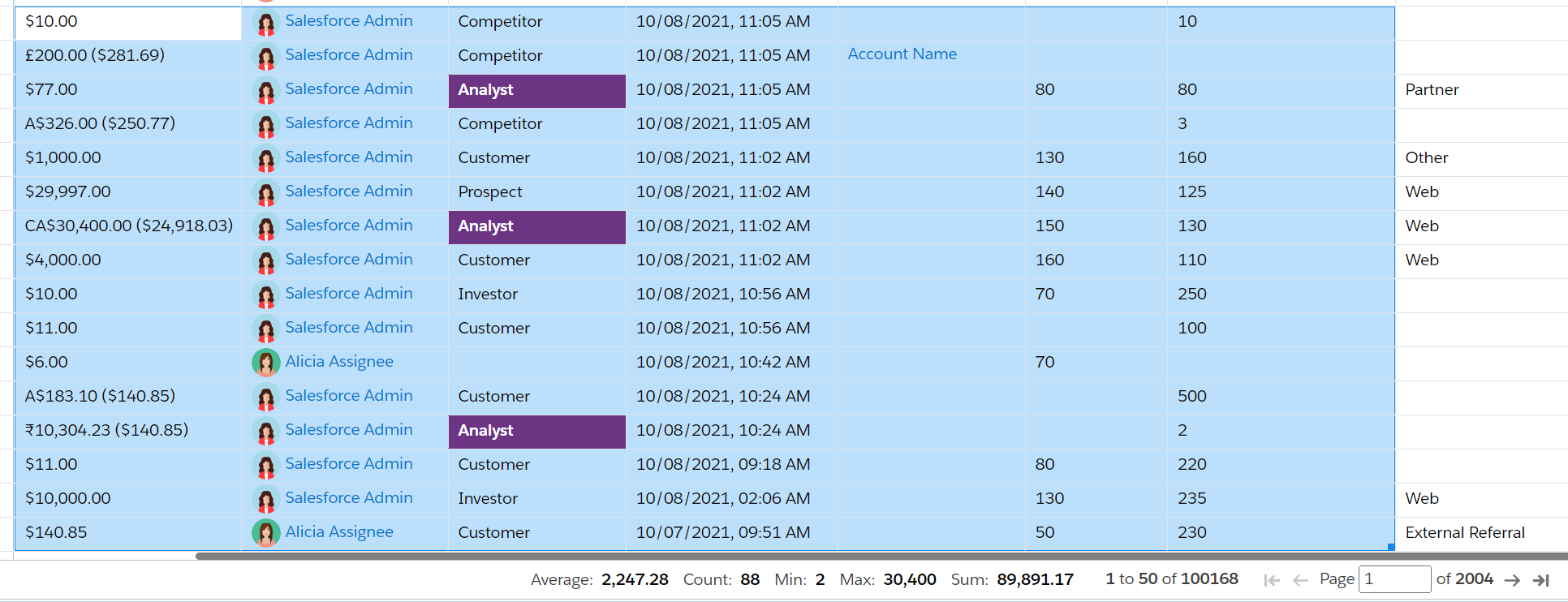 Ability to show live numeric fields selection aggregations in a view within pagination/status panel after manual configuration.