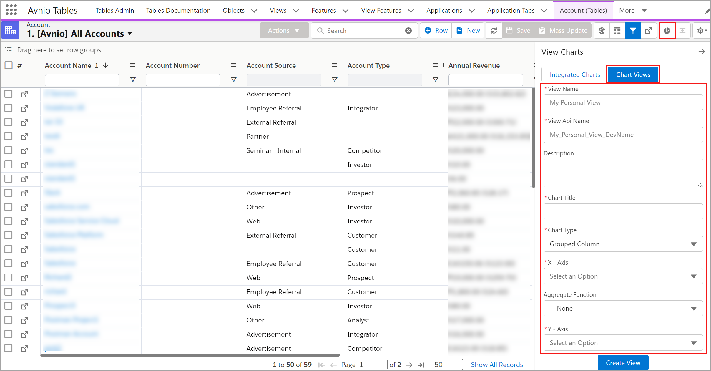 Separate Chart View | Introduced a new icon to create a separate chart View by clicking on any View > View Charts > Chart Views button on the Tables View page. You will have an option to switch between Integrated Charts and Chart Views. Integrated Charts - The chart created using this button are designed for the specific View and are in sync with the specific View, so they will be affected if you modify the base View or the main View. Chart Views - The chart View created using this button will act as a separate View, all the data for this View is taken from the base View, but this chart View will not be affected when the base View is modified. ![]() Click to enlarge
