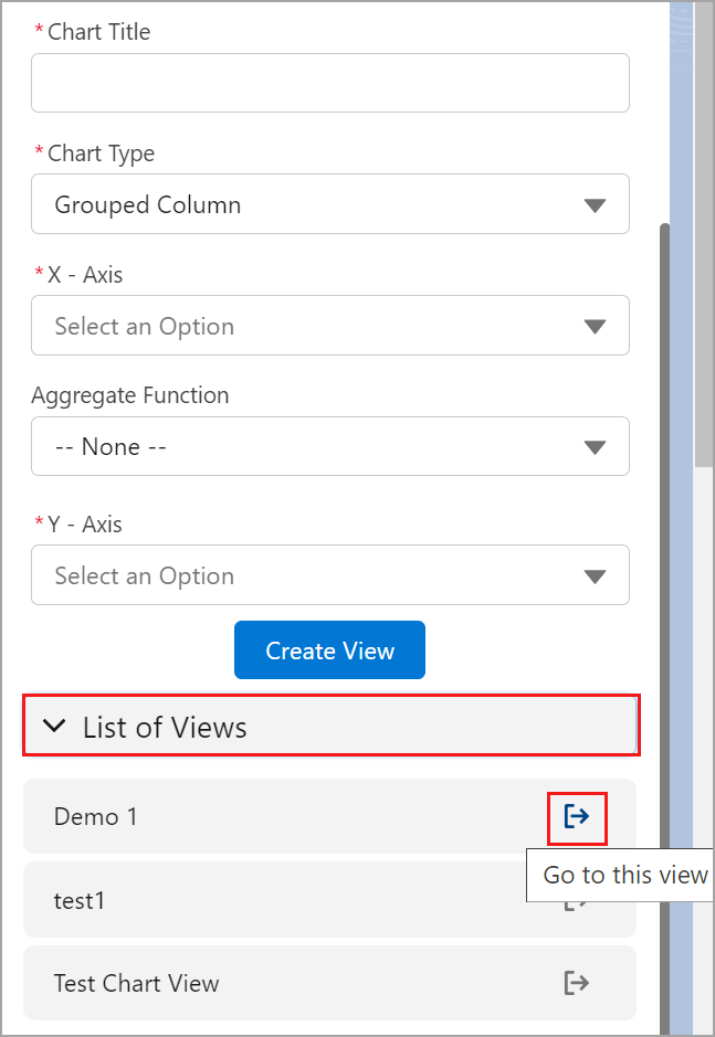 Mandatory Fields Validation | The Chart View will now have the mandatory validation for fields and can be validated by clicking the Create View button. ![]() Click to enlarge |