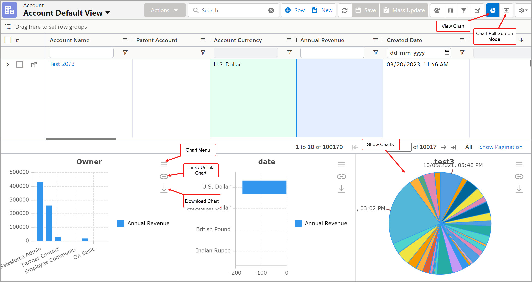 You will be navigated to the object View drop-down page.Choose a View and click the View Chart icon on the top panel.
