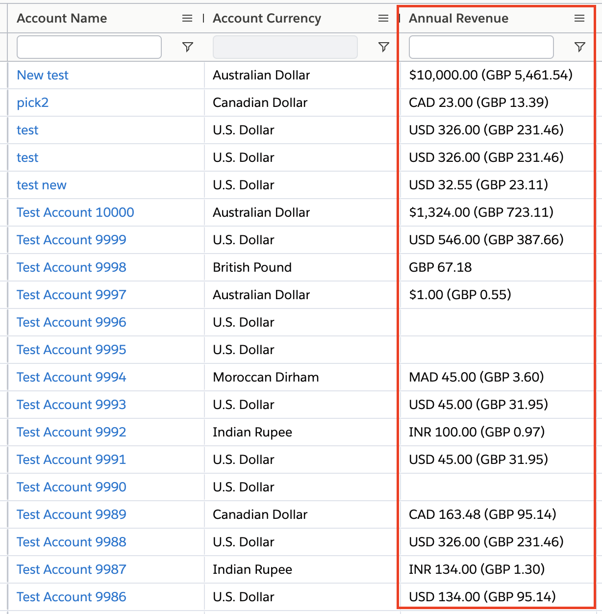 Tables have the Ability to show Corporate Currency along with record level currency for multi-currency Organization.