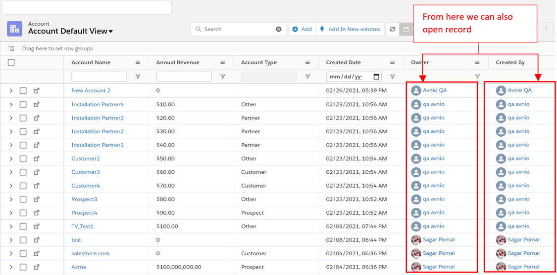 It will redirect to the record detail page in the new window. (Below image)